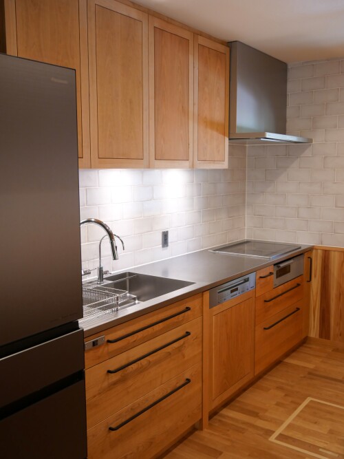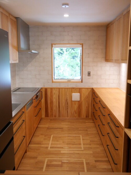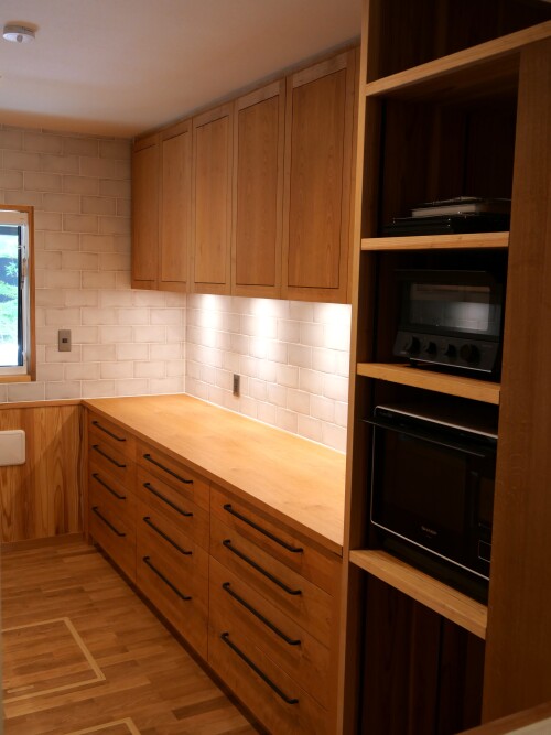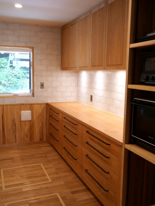長野県安曇野。穂高の森の中に佇むお家に、ヤマザクラのキッチンをお届けしました。